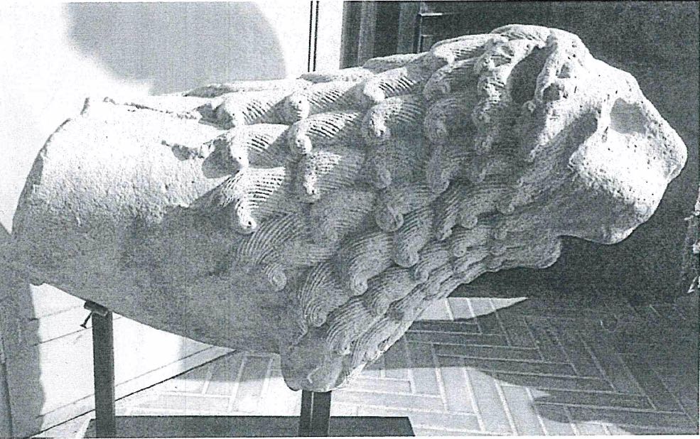 La scultura raffigura un leone, frammentario, verosimilmente collocato in origine alla base di un portale, di un pulpito o di un'arca sepolcrale. Si può ipotizzare che, nel contesto originario, vi fosse almeno un altro leone simile. La criniera, ben conservata, si struttura in sei "fasce" concentriche rispetto al capo dell'animale. I crini sono definiti singolarmente