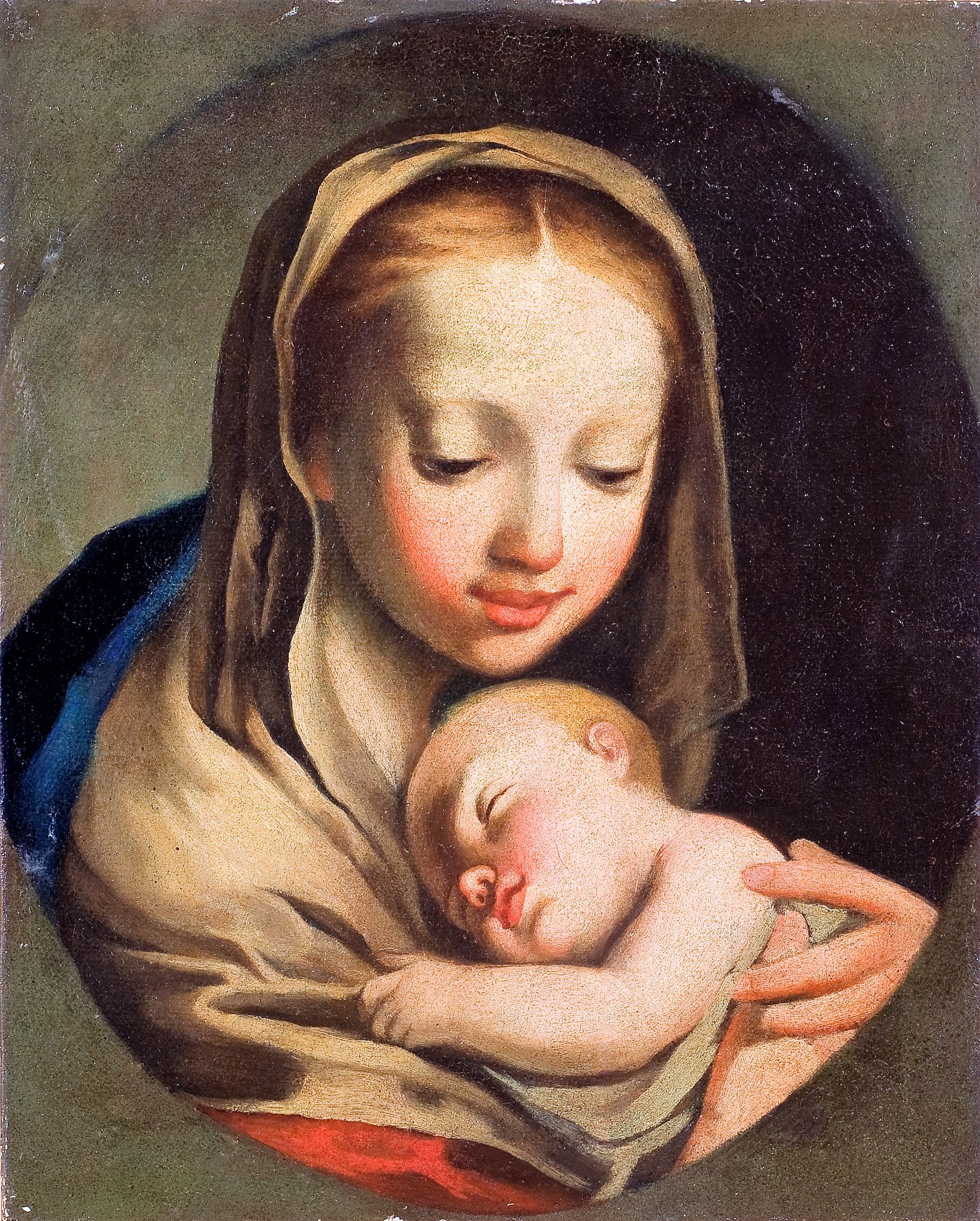 - NOTIZIE STORICO CRITICHE Piacevole dipinto da ricondurre alla cerchia dei seguaci del pittore veronese Giambettino Cignaroli. La tela è da collocare alla fase matura del maestro, purtroppo non sono noti la data di esecuzione e il pittore. Un confronto diretto con l’opera del Cignaroli, seppur non vi sia una precisa corrispondenza del disegno, è possibile con la “Madonna col Bambino” di collezione privata cremonese