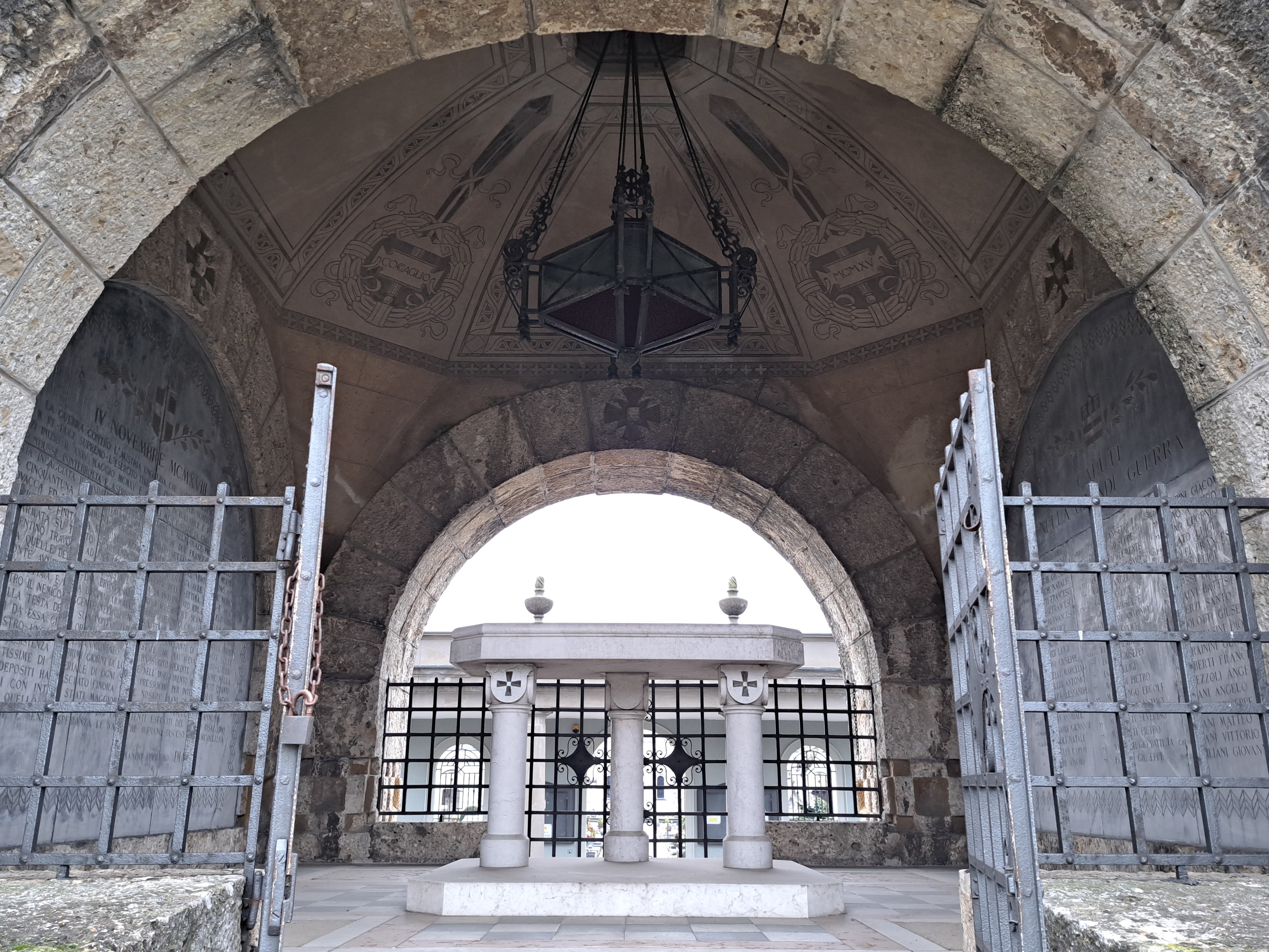 - ISCRIZIONI sulle 4 arcate esterne - PATRIAE HEROIS / VOTIVAE PRECES / CIVIUM CULTUS / AETERNA GLORIA // COCCAGLIO / XXIV-V-MCMXV / IV-XI-MCMXVIII / ANNO VI // - capitale -