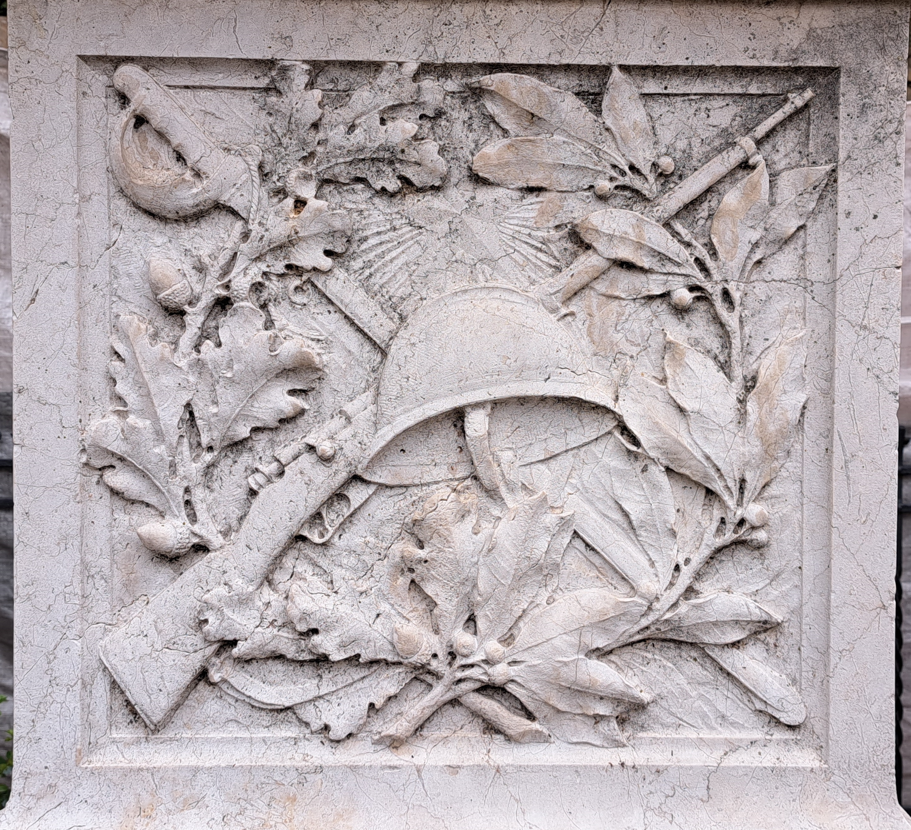 - STEMMI frontale, in basso - civile - Emblema - stella d'Italia - 1 - Stella raggiata, scolpita a a bassorilievo, ed inserita il tropaion della formella sul lato frontale dell'obelisco