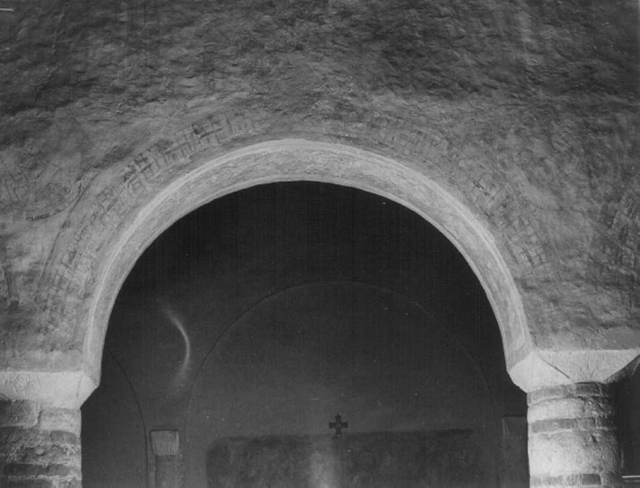 - NOTIZIE STORICO CRITICHE La critica è concorde nell' attribuire tali affreschi al secolo XII. Alla prima metà, riconducendoli nell' ambito della corrente espressionistica salisburghese (miniature dell' Evangelario di S. Pietro, Bibbia di Gherardo, Walthersbild di Michelbouern) che per la posizione geografica fece sentire un vivace influsso nel territorio veronese. Alla metà del secolo, proponendo un certo ritardo rispetto alle fonti oltremontane dovuto al processo di volgarizzazione . Alla seconda metà, verso la fine basandosi sugli accostamenti ad altri cicli di affreschi veronesi (SS. Nazaro e Celso di Verona, S. Andrea di Sommacampagna, Castelletto di Brenzone) ritenuti della metà o fine del secolo, e ai riferimenti con miniature salisburghesi e la Bibbia di Mantova, sempre dello stesso periodo. Caratteristica del complesso è un vivace gusto narrativo con contrapposizioni cromatiche