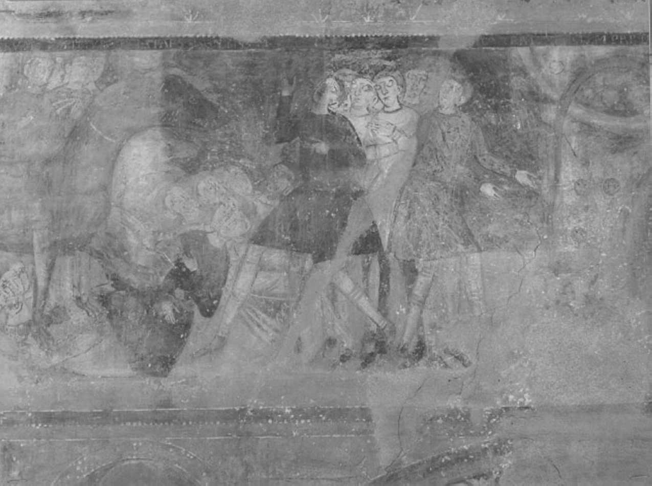 - NOTIZIE STORICO CRITICHE Le figure sono allungate e mostrano evidente analogia con altre salisburghesi e con affreschi di Sommacampagna (Verona). Sulla faccia rossastra che funge da cornice divisoria si leggono alcune lettere bianche (versetti dell' Apocalisse)