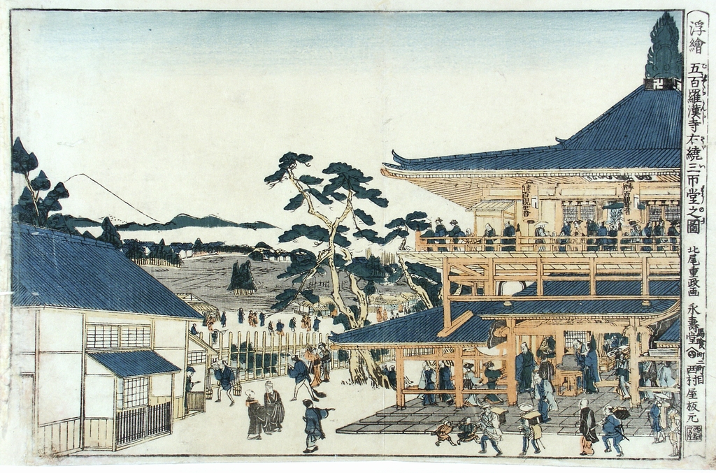 Uki e. Gohyaku rakanji. veduta di un tempio