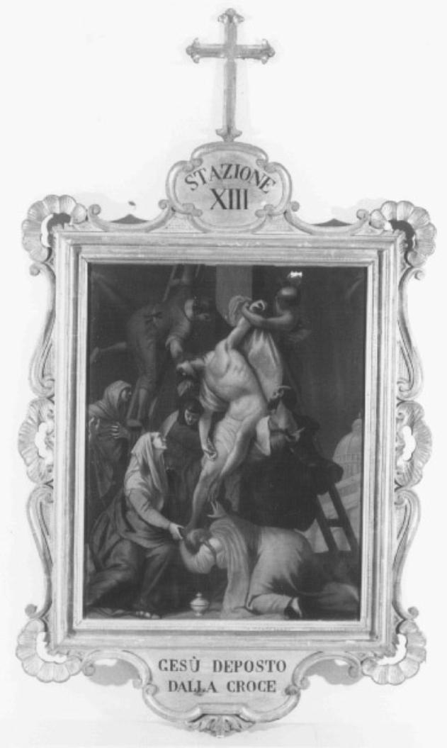 - NOTIZIE STORICO CRITICHE La serie dei quattordici dipinti (citata nell'elenco del 1874) è opera di pittore veneto del primissimo Ottocento, memore della stagione pittorica veneziana settecentesca. Sono innumerevoli, infatti,le letture veronesiane e i riferimenti stilistici e iconografici ai Tiepolo, al Guarana, al Piazzetta; così come precisi sono i riferimenti a quadraturisti e scultori