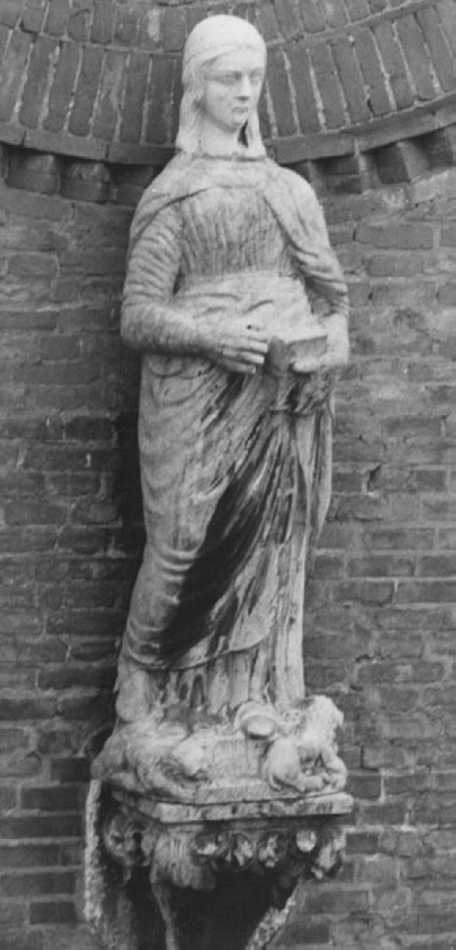 La statua di Santa Eufemia poggia su base decorata da foglie d'acanto. La Santa coperta da un manto, tiene un libro in mano. Ai suoi piedi sono accovaciati due leoni