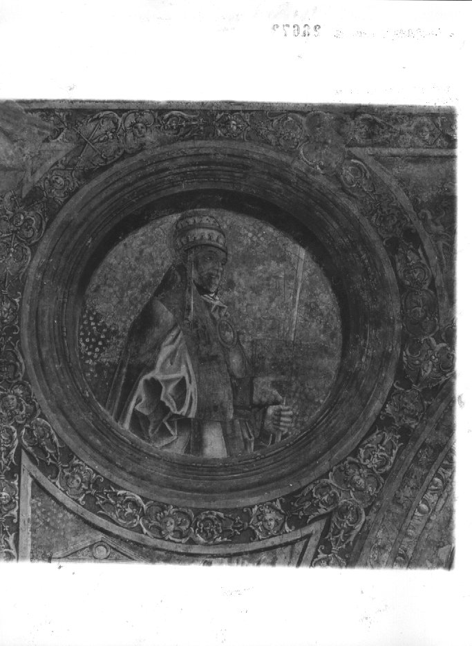 Il pontefice, con un piviale, si triva sulla sinistra