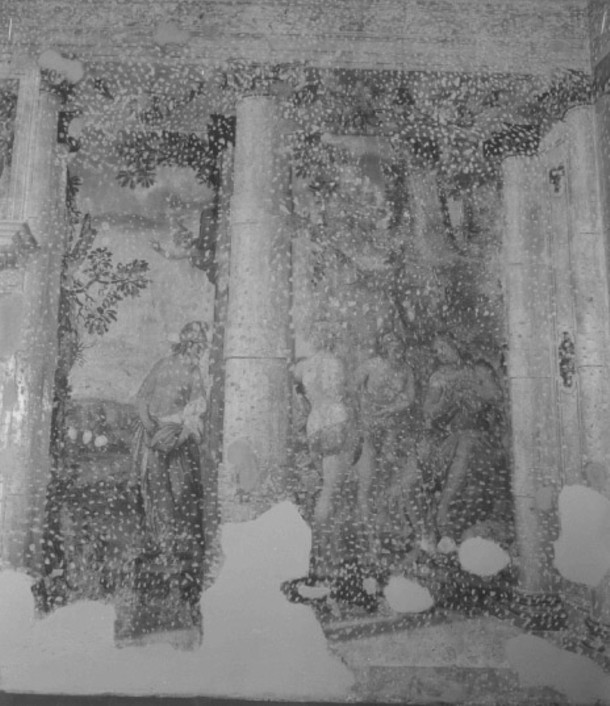 Architetture: loggia con colonne ioniche binate. Personaggi: Paride Divinità: dee; Eris; Venere. Oggetti: mela