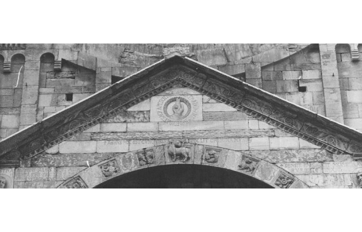 - NOTIZIE STORICO CRITICHE Gia' dal secolo scorso la letteratura artistica (Rossi 1854) aveva attribu ito a Niccolo', responsabile con la sua bottega della deco- razione plasti ca esterna della basilica di San Zeno, anche lo stesso protiro, databile c ome le sculture al 1138 grazie all'iscrizione po- sta sul fianco esterno d estro dell'edificio (per questa e le altre opere della chiesa menzionate c fr. per un'analisi piu' approfondita le schede corrispondenti); l'artista era reduce dai lavori nella Cattedra- le di Ferrara, forse databili al 11 35, e poco tempo dopo sara' attivo anche nella facciata del Duomo veronese . Il problema storico - artisti- co del protiro non riguarda percio' l'aut ografia, se non per la distin- zione da operare tra le parti spettanti al maestro e quelle da assegnare ai suoi collaboratori, quanto sulle eventual i manomissioni subite dalla opera durante l'intervento di Brioloto, che tr a lo scorcio del XII se- colo e i primi anni del XIII costruisce e decora la Ruota della Fortuna, e completa la facciata. La critica ha generalmente ristretto l'operazio- ne di Brioloto a poche rettifiche, in particolare n el portale, probabil- mente ampliato, i cui stipiti originali, formati da lastre con racemi vegetali sormontate da telamoni, sono attualmente visibi li ai lati della entrata (Simeoni 1909; Boeckler 1931; Arslan 1939 e 1943; Da Lisca 1941; Romanini 1964); va pero' notato che e' mancata, da parte d egli studiosi che si sono occupati del problema, una dettagliata analisi d el lavoro in esame. Solo in tempi recenti la Kain (1981) ha affrontato min uziosamente l'argomento, con proposte che peraltro suscitano notevoli rise rve cri- tiche. La studiosa, infatti, ha proposto che l'intervento di Brio loto, al quale sarebbe inoltre da aggiungere Adamino da San Giorgio, artis ta relegato da tutti gli studiosi (inclusa la Kain) al ruolo di semplice d ecoratore, modifichi sensibilmente l'aspetto esteriore della chiesa. Il pr otiro di San Zeno aveva, secondo la Kain, un duplice baldacchino, come que llo del Duomo, il cui elemento superiore sarebbe stato tolto per consentir e la visitazione della statua originale e la collocazione dell'attuale imm agine di San Zeno, nonche' dei capitelli della porta originale, inseriti a lla base della lunetta stessa; infine, le sculture laterali, di Niccolo' e Guglielmo, sarebbero state poste nel luogo at- tuale, trasferendole dalla originaria ubicazione, all'interno della ba- silica, probabilmente sul po ntile. Esula dai limiti di questa scheda una replica dettagliata agli argo menti della studiosa, ma va osserva- to che non esistono dati significativ i per affermare l'esitenza di un doppio baldacchino (anche l'indagine mura ria porta ad asserire il con- trario), e ancor meno per pensare ad una pri mitiva sistemazione delle sculture laterali all'interno dell'edificio. Lo stesso portale del 1138 non doveva differire troppo, come dimensio- ni, da ll'attuale, come rilevano le misure del protiro e il numero del- le formel le bronzee, ancorche' ricollocate in un ordine diverso dal primitivo. Per quanto rigurada la lunetta, non sembra proprio che la stutua at- tuale sos tituisca un'altra opera, ne' esiste alcuna certezza sulla provenienza dei capitelli posti alla base. In realta', sembra che Brioloto abbia sostanzia lmente rispettato i lavori preesistenti, limitandosi alle modifiche purame nte funzionali al nuovo aspetto della basilica, che non hanno alterato l'o riginaria unita' d'insieme delle opere di Niccolo'. Diversa e' invece la q uestione sulle singole attribuzioni all'interno del lavoro. Se e' possibil e difatti individuare alcuni momenti di intervento di colloboratori dell'a rtista, come le lastre con i Mesi o i rilievi con figure mostruose, sembra difficile poter accettare la tesi di Arslan (1943) che assegna i due san Giovanni al Maestro della Sacra di San Michele , soprattutto perche' buon a parte della critica piu' recente tende ad identificare sotto tale sigla il me- desimo Niccolo'. Da osservare, infine, che la presenza degli stem- mi degli abati Emilei ha, in questa circostanza un puro significa- to cele brativo, visto che si colloca nei primi decenni del sec. XV e che altri st emmi degli stessi abati compaiono in altre parti del- l'edificio (cfr. le schede corrispondenti). Il fregio va ascritto con probabilita' alla botteg a di Niccolo' e alla mano di un unico maestro