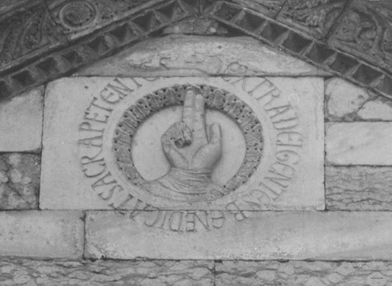 - ISCRIZIONI DEXTRA DEI GENTES BENEDICIT SACRA PETENTES - caratteri gotici - a solchi - latino