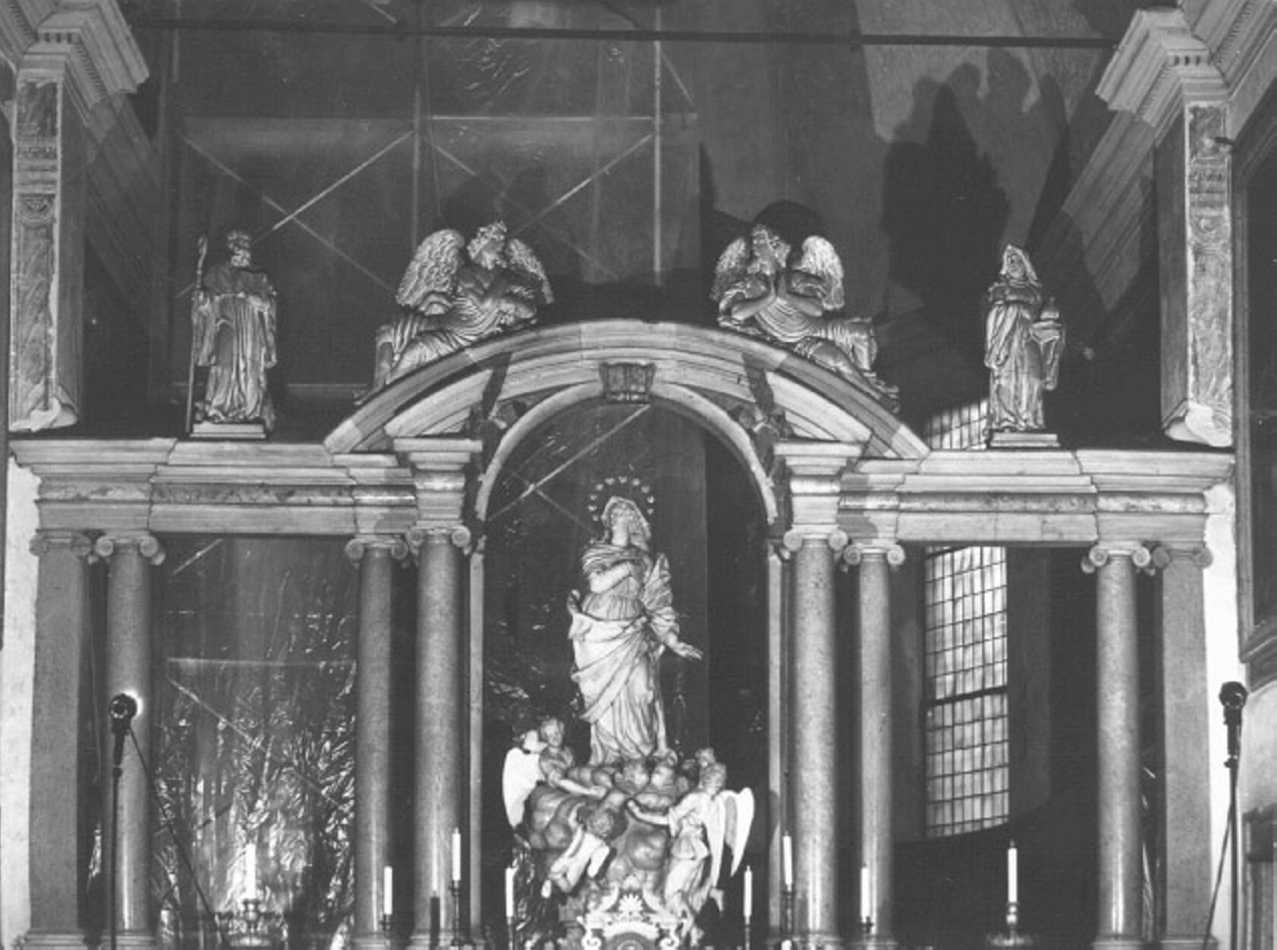 - NOTIZIE STORICO CRITICHE E' questa con probabilita' la parte supersite dell'edizione dell'al- tare della fine del XVI secolo, a cui furono poi aggiunte le statue di S. Benedetto e Santa Scolastica nonche' quelle dei due angeli - Il Dalla Rosa vi ravvisa caratteri Sanmicheliani -