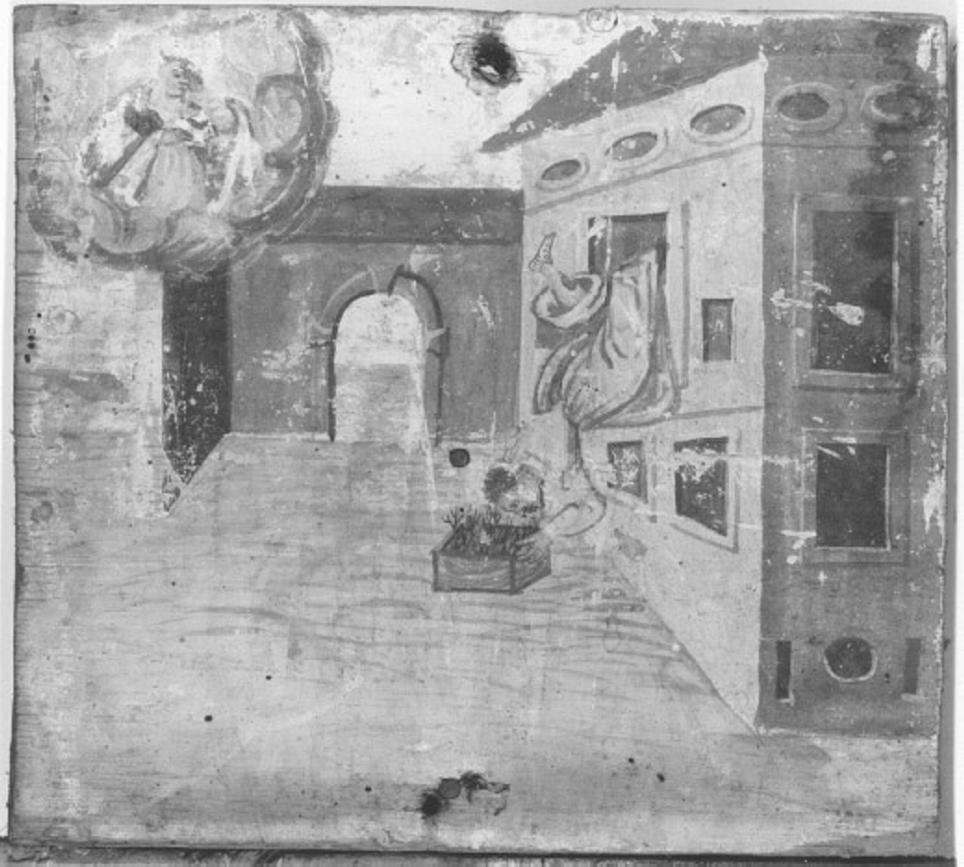 - NOTIZIE STORICO CRITICHE Sul retro di una settantina di tavolette, quasi completamente ridipinte nel 1921, il restauratore ha riportato indicazioni cronologiche insieme a numeri progressivi. Frequente negli esempi piu' antichi della raccolta di Lonigo, la rappresenteazione in contiguita' di momenti distinti, per tempo e luogo, cosi' come la raffigurazione dei devoti e dei santi sullo stesso piano