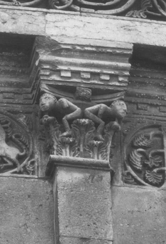 - NOTIZIE STORICO CRITICHE Arslan (1939 e 1943) ricollega i capitelli ad altri analoghi esistenti nel veronese S. Giovanni in Valle e a Villanova e li definisce propaggini classiche ... che s'innestano nel gotico . Li ritiene inoltre coevi all'attivita' di Peregrinus, identificando forme consuete al maestro nelle protomi di animali al di' sopra delle foglie d'acanto