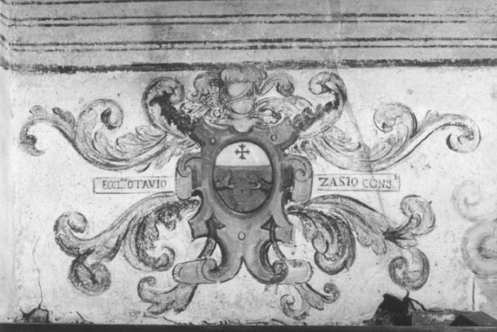 - ISCRIZIONI Su cartiglio ai lati dello stemma - ECCL. MO OTAVIO ZASIO CONS. E - lettere capitali - a pennello - latino