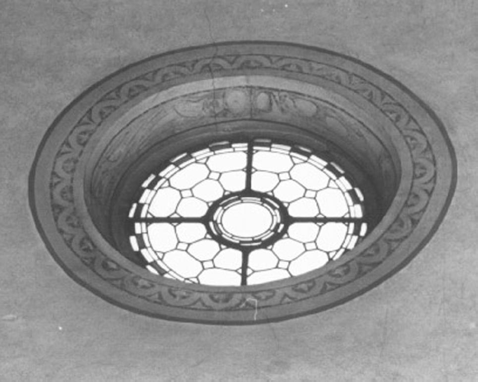 - NOTIZIE STORICO CRITICHE L'affresco nell'intradosso risale probabilmente all'anno di apertura delle finestre, 1883; la decorazione geometrica, invece, rivolta verso il vano della chiesa sembra piu' recente, probabilmente eseguita intorno al 1936, anno in cui vennero poste le attuali vetrate