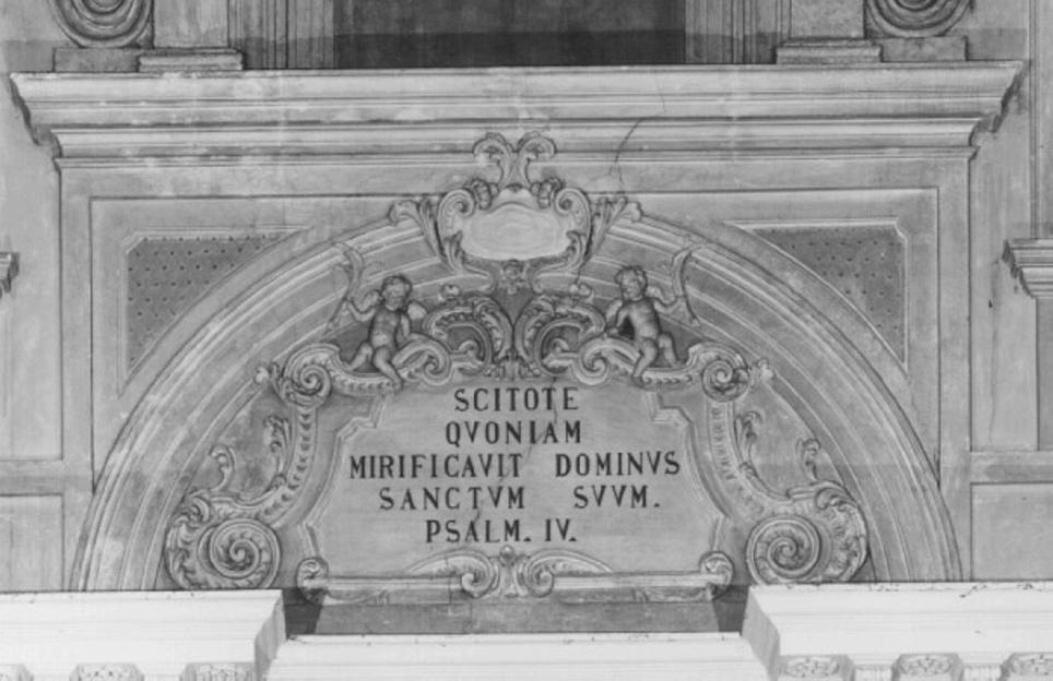 - ISCRIZIONI Sopra porta d'entrata - SCITOTE / QUONIAM / MIRIFICAVIT DOMINVS / SANCTUM SUUM / PSALM. IV - lettere capitali - a pennello - latino