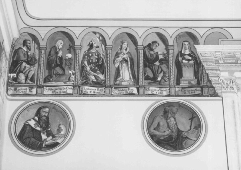 Personaggi: San Rocco; Santa Margherita; San Ludovico; Santa Elisabetta; San Francesco Solano; Santa Caterina; Sant'Agostino; San Geronimo