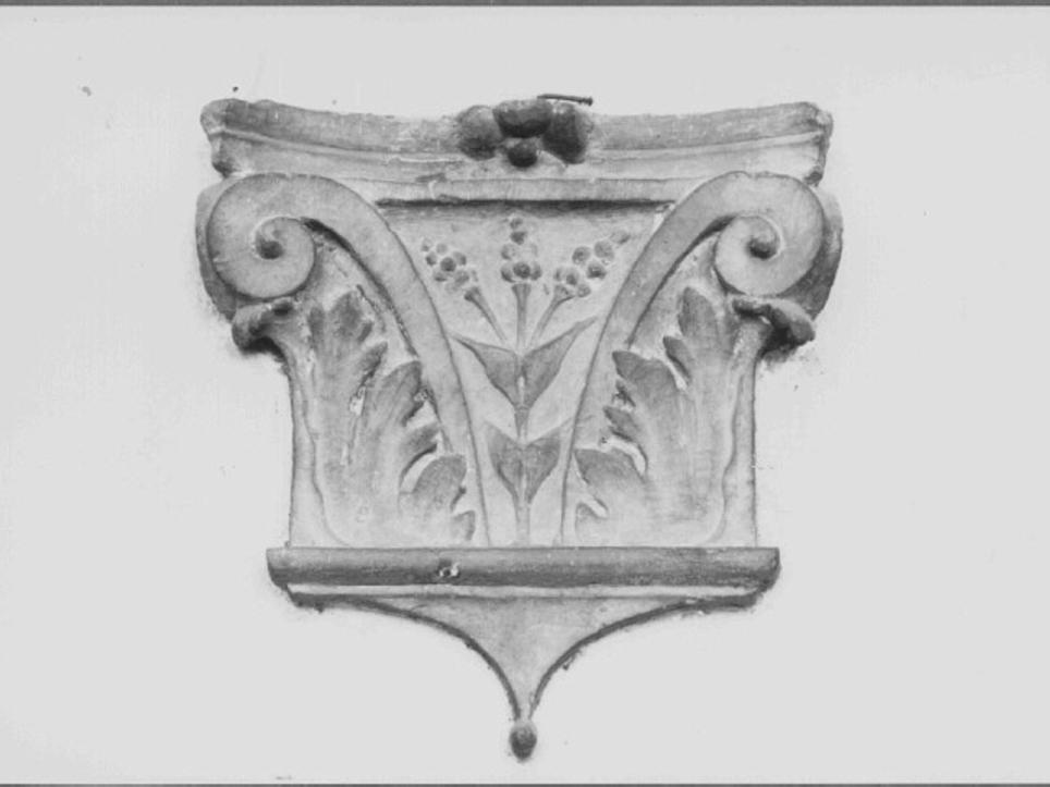 Peduccio con oliva , foglie d'acanto , caulicoli , rosetta , motivo floreale