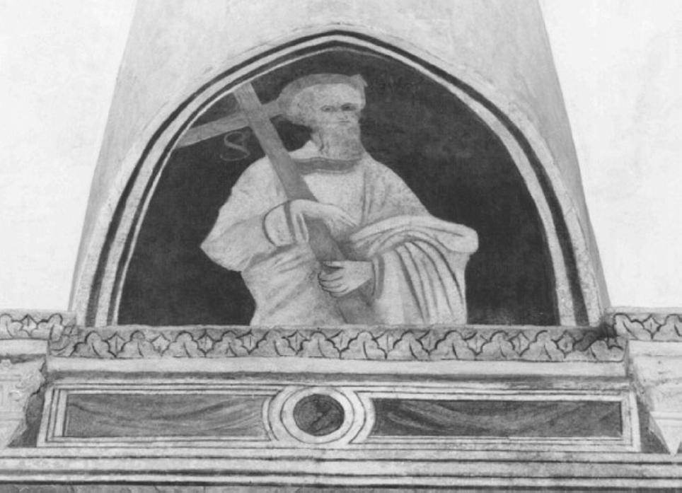 - ISCRIZIONI A sinistra della testa - S/ANCTUS/ - lettere capitali - a pennello -
