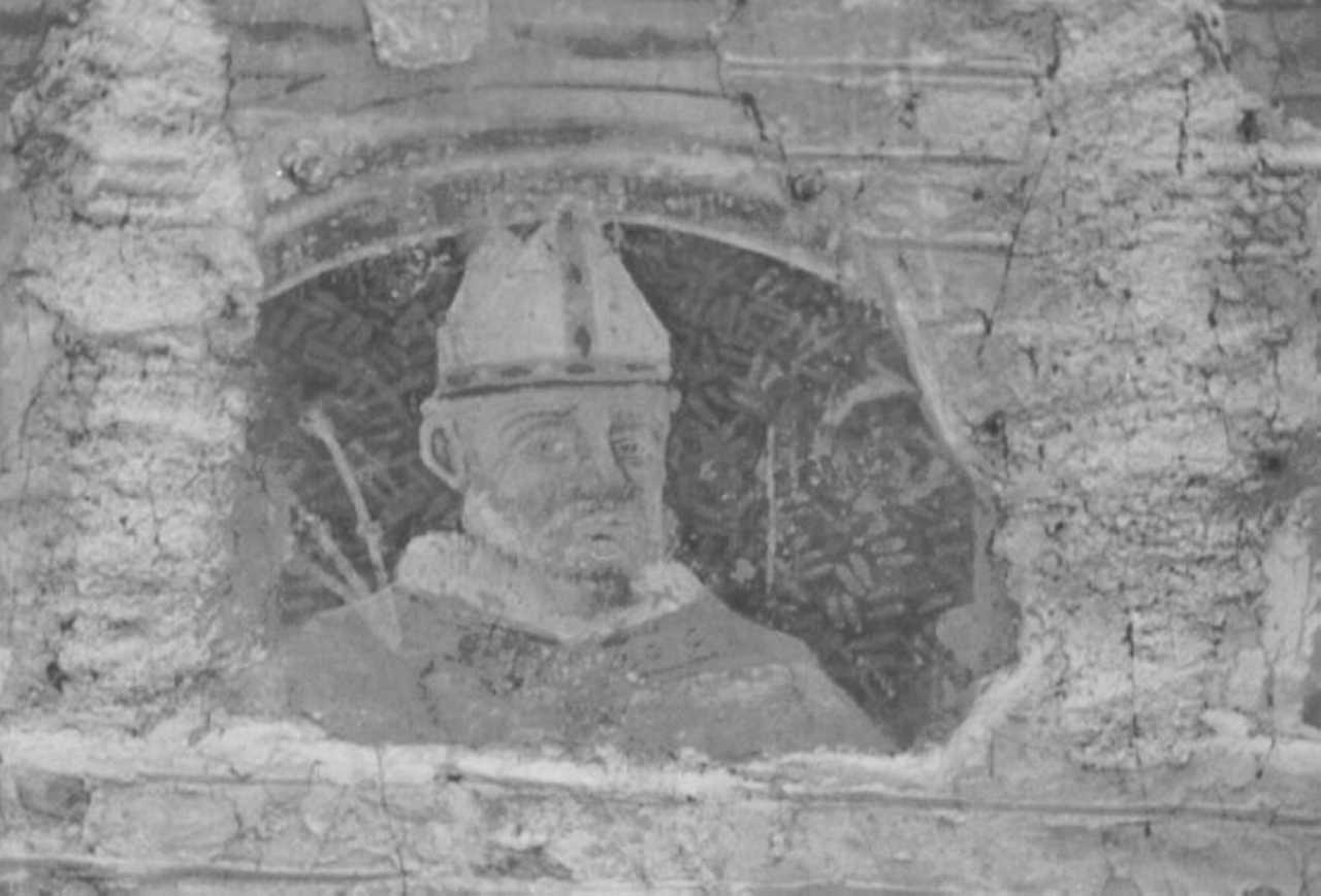 Personaggi: Santo vescovo. Attributi: (Santo vescovo) mitra; pastorale
