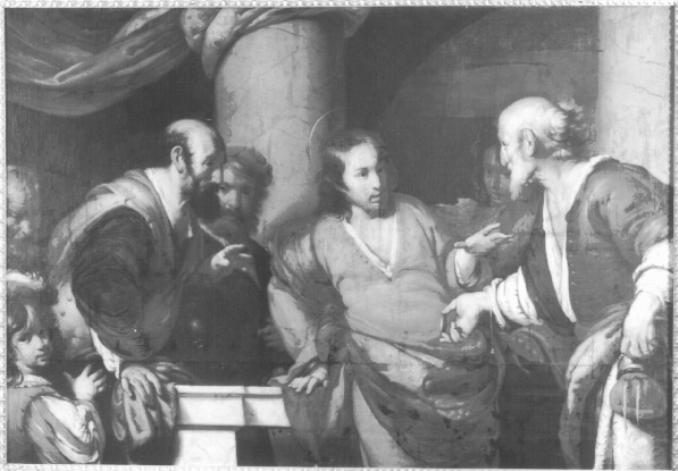 Personaggi: Cristo; fariseo. Oggetti: moneta; bisaccia