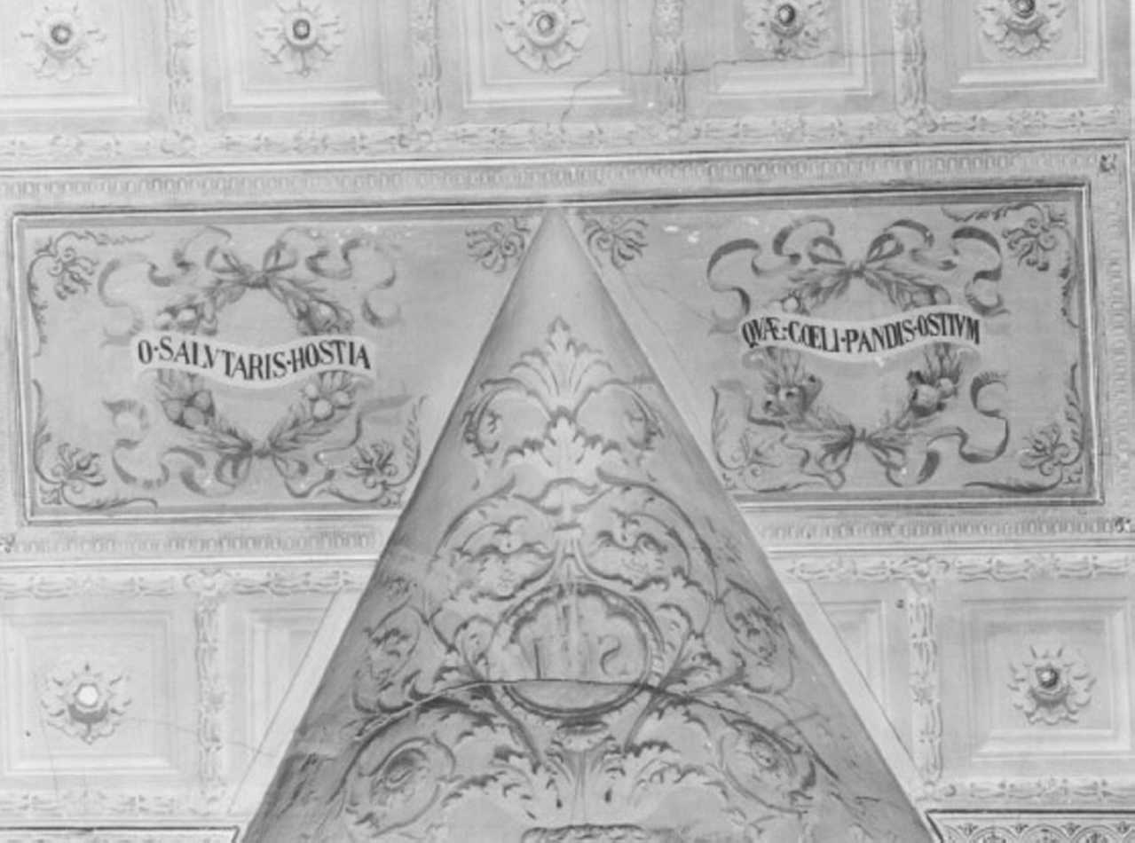 - ISCRIZIONI Sul cartiglio della ghirlanda sinistra - O-SALUTARIS-HOSTIA - lettere capitali - a pennello - latino