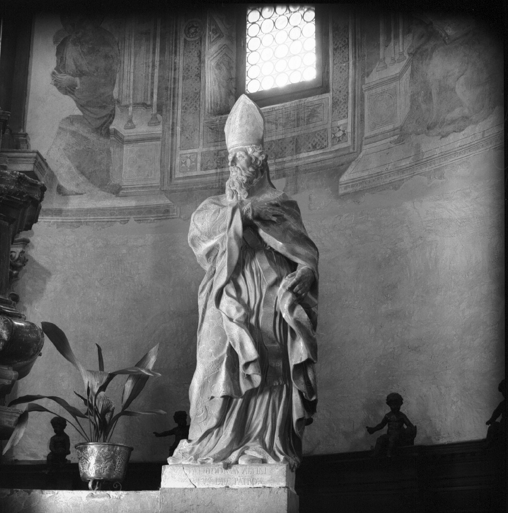 - NOTIZIE STORICO CRITICHE Nel contratto tra lo scultore Giovanni Toschini e i rappresentanti del Capitolo della chiesa di S.S.Maria e Donato, relativo al rifacimento dell'altare maggiore (pubblicato da V. Zanetti, 1873, pp.74/77) si parla di due statue di santi, una di S. Lorenzo Giustinian e l'altra di S. Donato. Tuttavia l'iscrizione alla base della statua posta a destra dell'altare fa esplicito riferimento a S. Eliodoro, Vescovo di Altino e patrono della Diocesi di Torcello