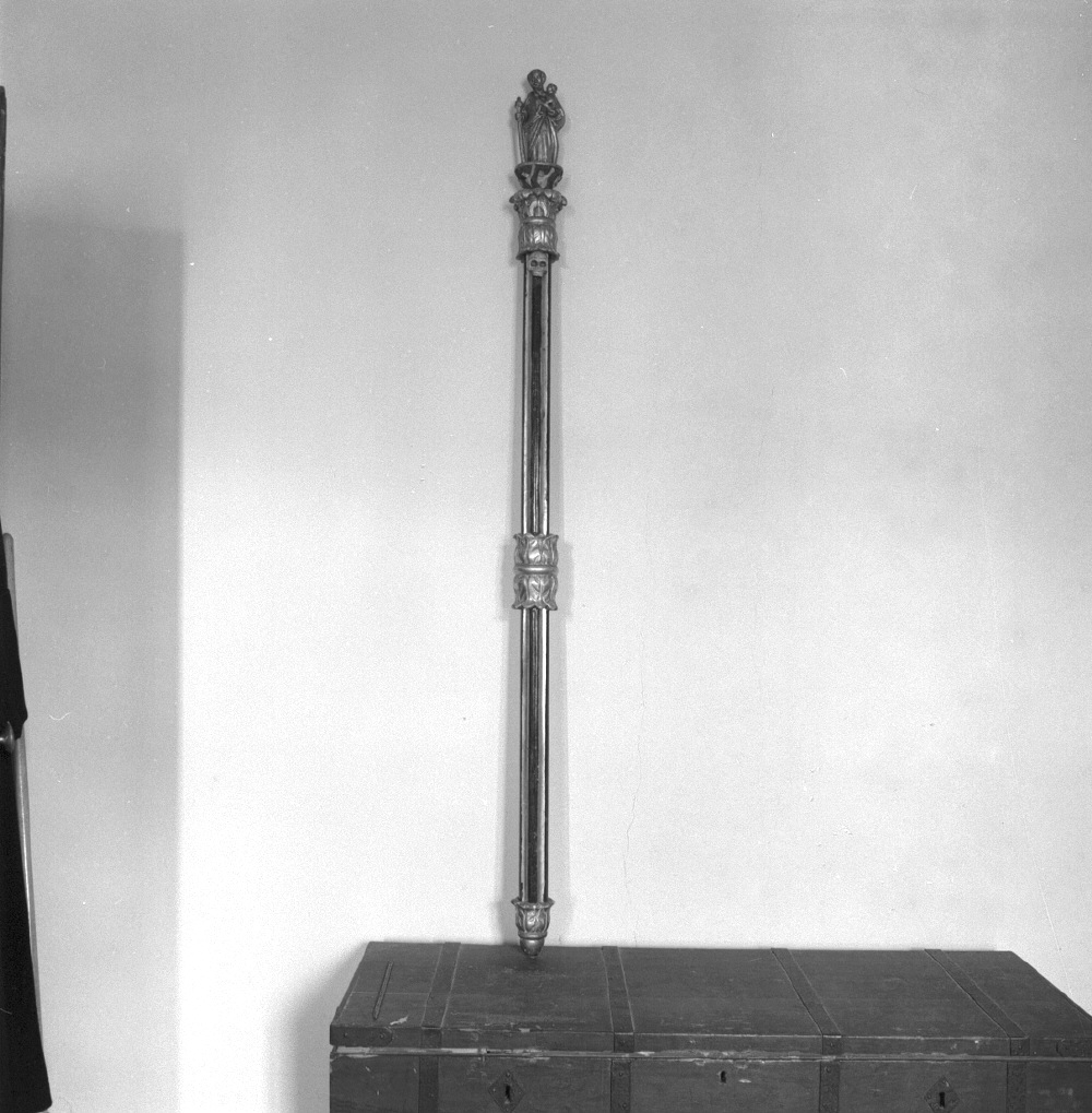 L'asta presenta al centro un nodo con motivi di foglie disposti in modo simmetrico e speculare; si conclude con una statuina di S.Giuseppe. S. Giuseppe regge in braccio il Bambino è posto su un nodo sul quale sono raffigurate anime del purgatorio tra le fiamme rosse