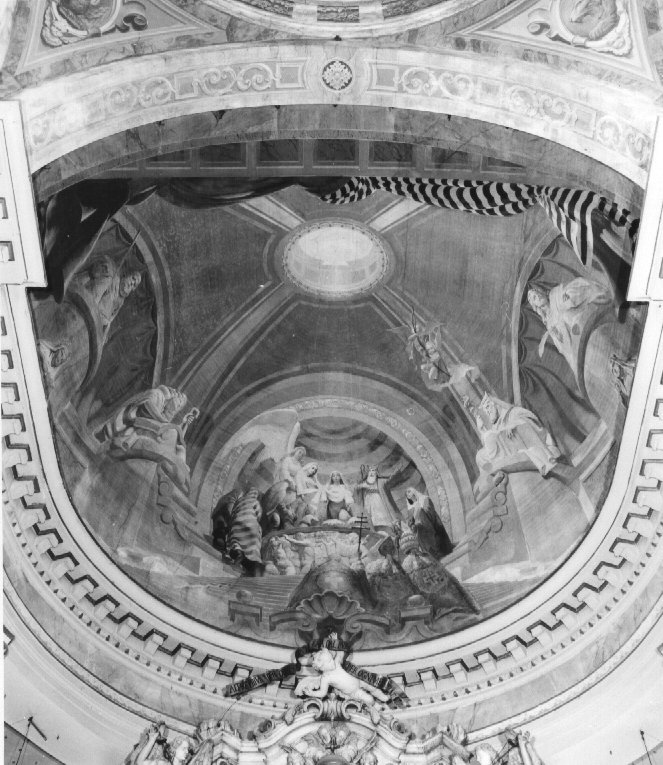 Natività della Madonna con figure di Papi come rappresentati della Chiesa Cattolica; Finte statue dei profeti Isaia, Osea, Michele e Sofonia