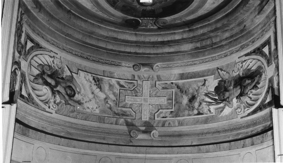 Angioletti con fronde, croce greca. Motivi decorativi a finti marmi