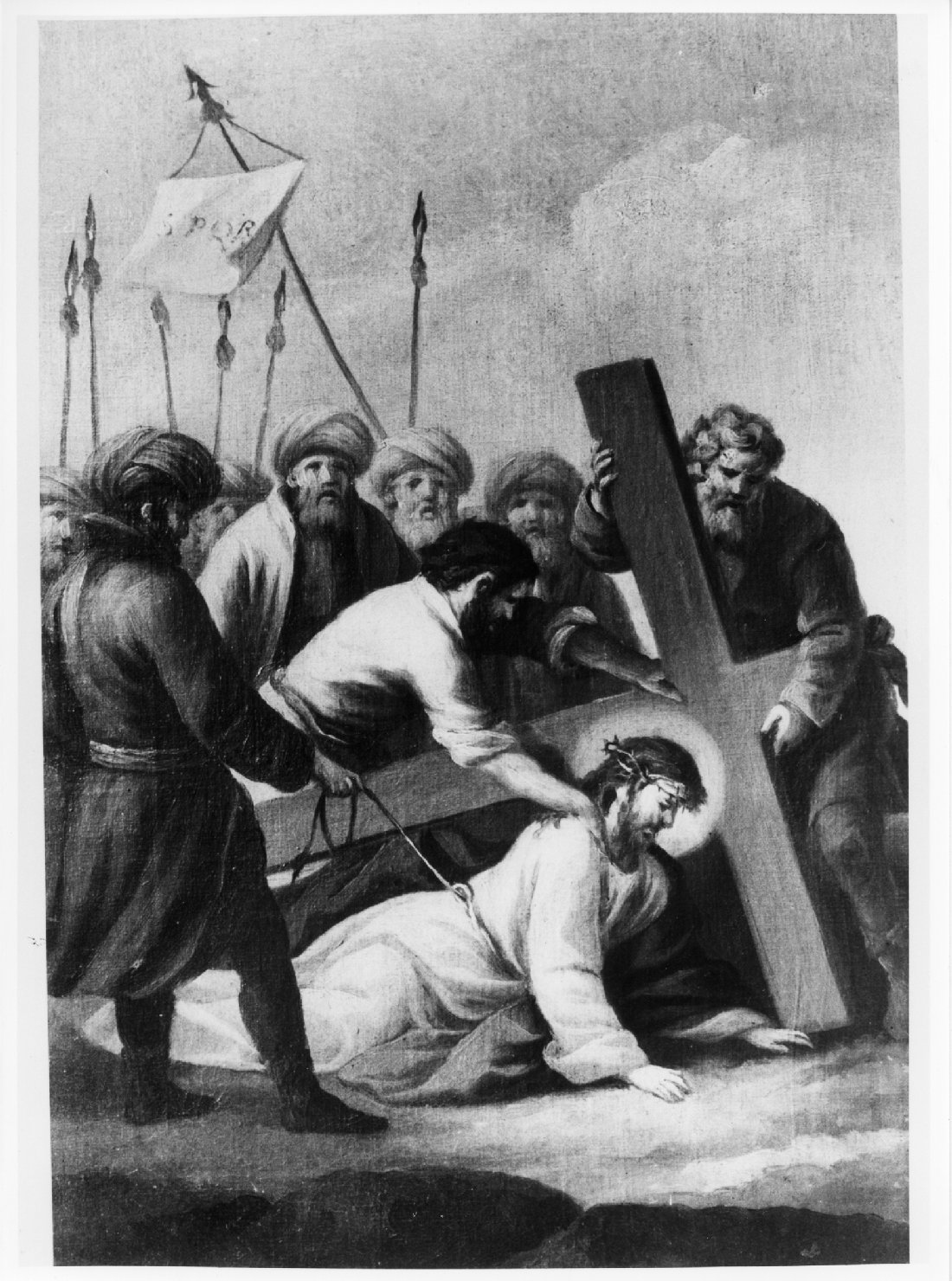 - NOTIZIE STORICO CRITICHE La guida De Bortoli-Moro-Vizzutti segnala che la Via Crucis era per tradizione erroneamente assegnata all' attività giovanile di Ippoli to Caffi. Il confronto con l'opera del pittore (in particolare le st azioni di Via Crucis dipinte per la chiesa parrocchiale di Caerano S . Marco, tTreviso), conferma l'estraneità della serie in esame