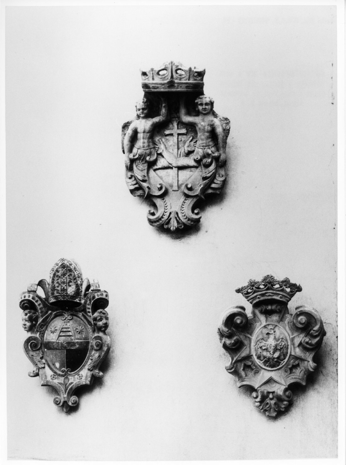 Decorazione: cornice: cherubini reggicorona; volute vegetali