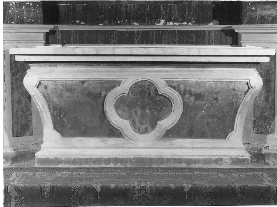 Paliotto d'altare curvo con elemento decorativo quadrilobato al centro