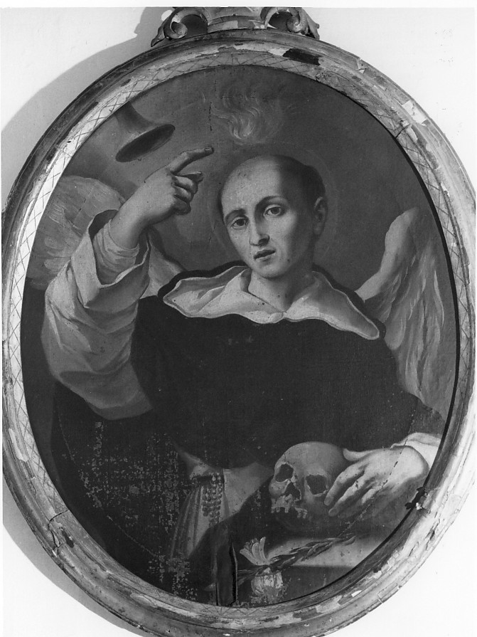 La tela ritrae il santo Vincenzo Ferrer, religioso e predicatore apocalittico nativo del regno di Valencia, appartenente all'ordine dei Domenicani. San Vincenzo Ferrer è raffigurato con l'abito domenicano (saio bianco e mantello nero), con l'indice della mano rivolto verso il cielo e la fiamma dello Spirito Santo ardente sul capo. In basso a destra sono raffigurati un teschio e un giglio
