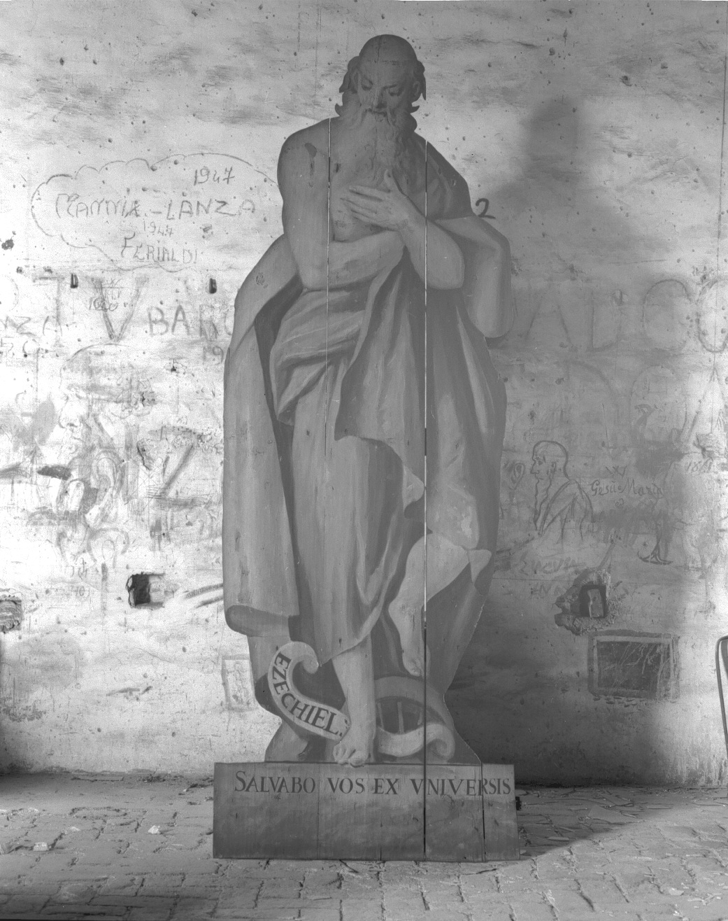 - NOTIZIE STORICO CRITICHE L'opera fa parte delle trentadue sagome commissionate dal Senato Veneto nel 1619 al cappuccino Paolo Piazza per occupare le nicchie interne della chiesa in sostituzione delle previste statue in marmo. Tali opere- dodici Profeti, dodici Sibille, quattro Evangelisti, quattro Dottori della Chiesa-sono state in parte restaurate, in parte purgate su richiesta dei P.P. Cappuccini nel 1758 da Giovanni Angeli. Delle trentadue sagome presenti in chiesa fino al 1950, restano oggi le due Sibille del presbiterio e, nel deposito del sopracoro, una terza Sibilla e i Profeti Zaccaria ed Ezechiel