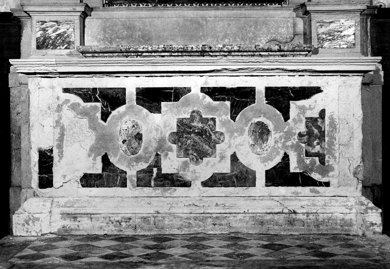 Paliotto decorato da specchiature marmoree di forma geometrica: quadrilobate e ovali