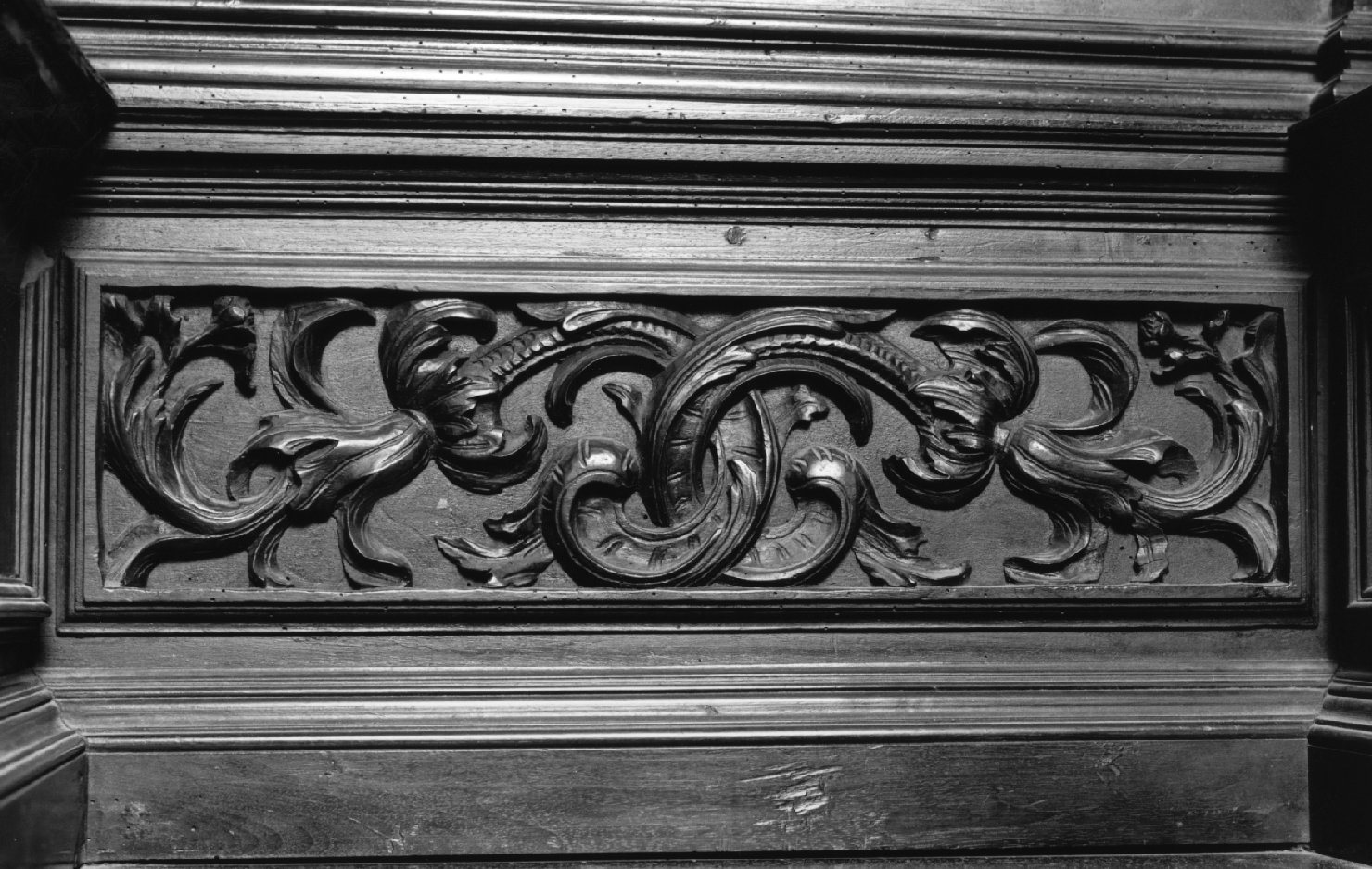 DUE PESANTI VOLUTE BACCELLIFORMI SI DIPARTONO DUE PESANTI FIORI DAI LUNGHI PISTILLI