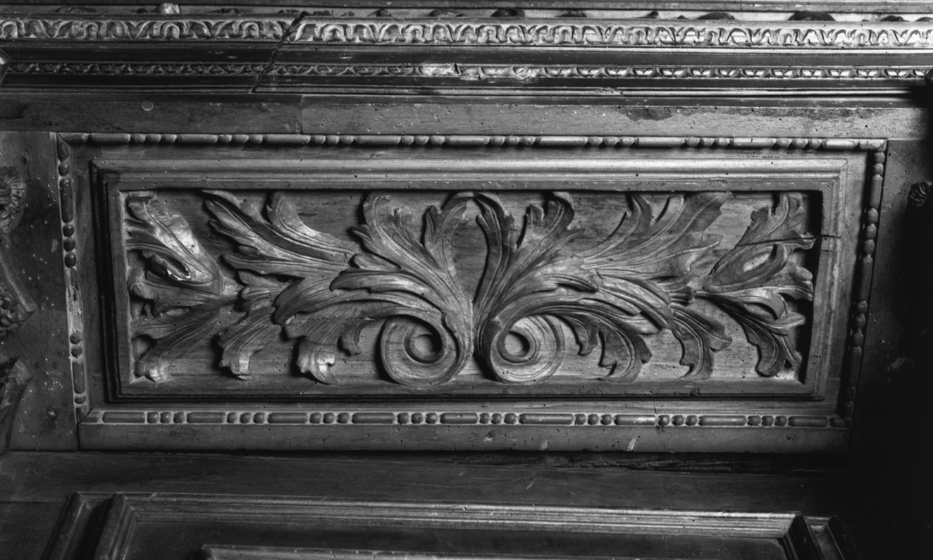 Intreccio di foglie disposte al centro in una voluta