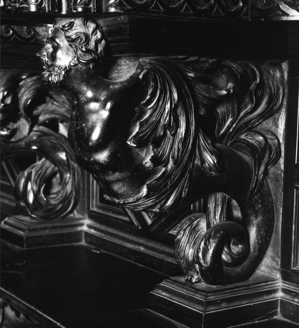 Figura femminile; ali piumate al posto delle braccia; il piede termina con decorazioni fitomorfe