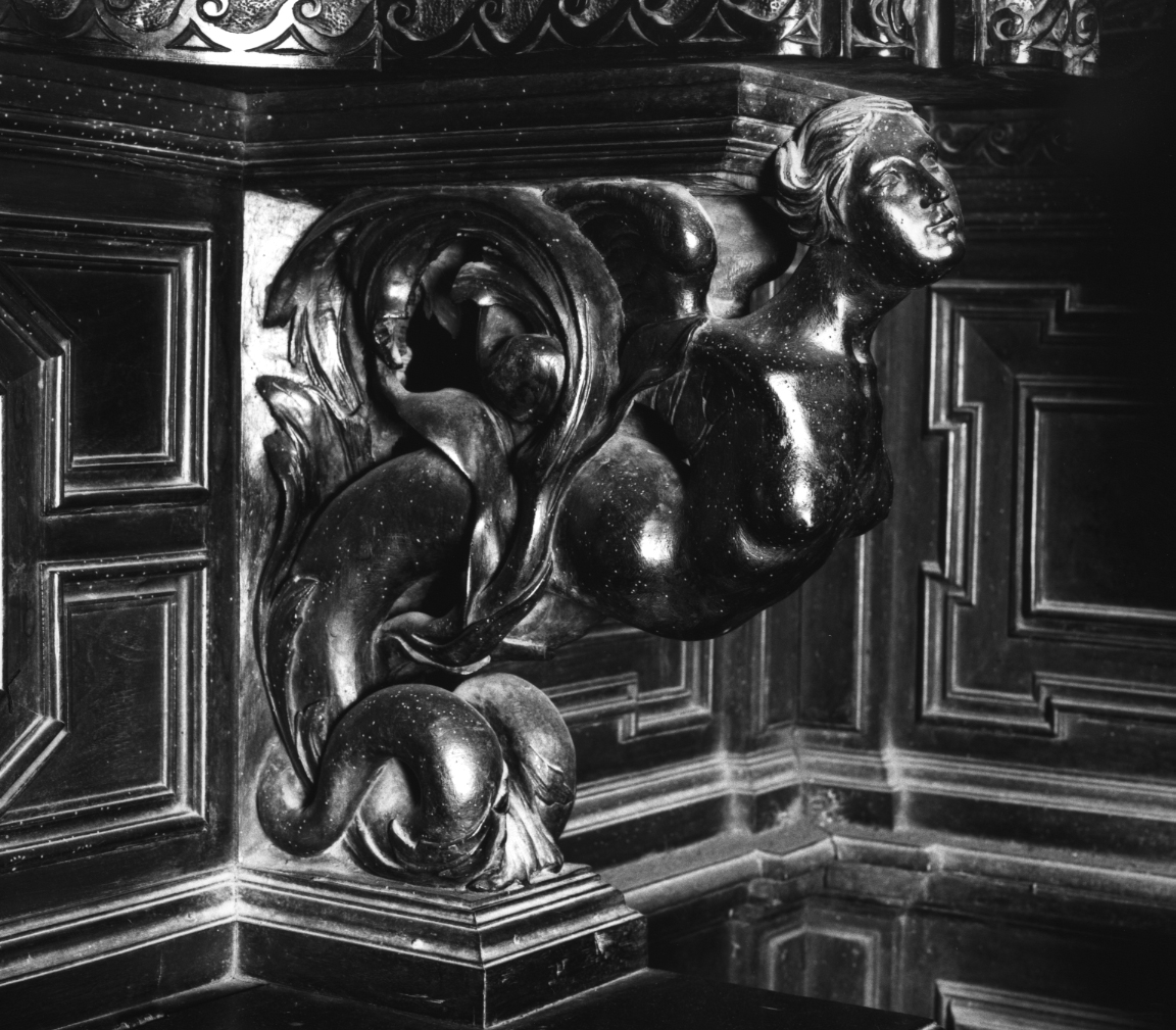 Testa femminile; torso scoperto; ali al posto delle braccia; il corpo termina con una attorcigliata e con decorazioni fitomorfe