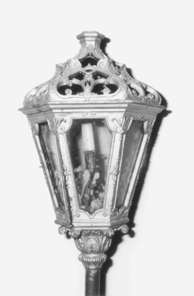 Bocciolo: decorato a volute; lanterna: esagonale; sportello: trapezoidale; finestrelle a luce mistilinea; calotta: traforata con decorazioni a volute; bottone apicale