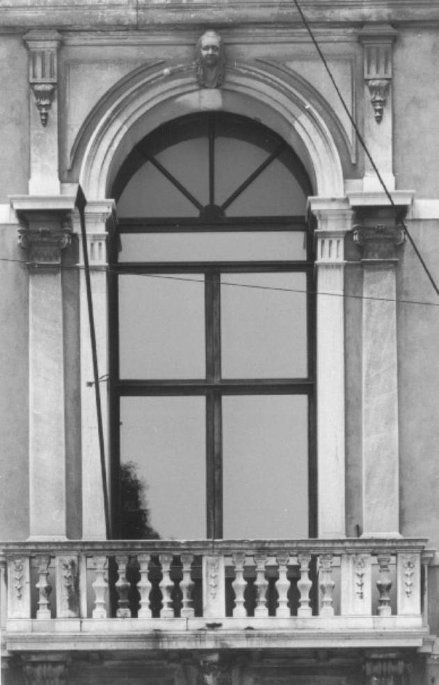 Finestrone ad arco con testa femminile in chiave di volta