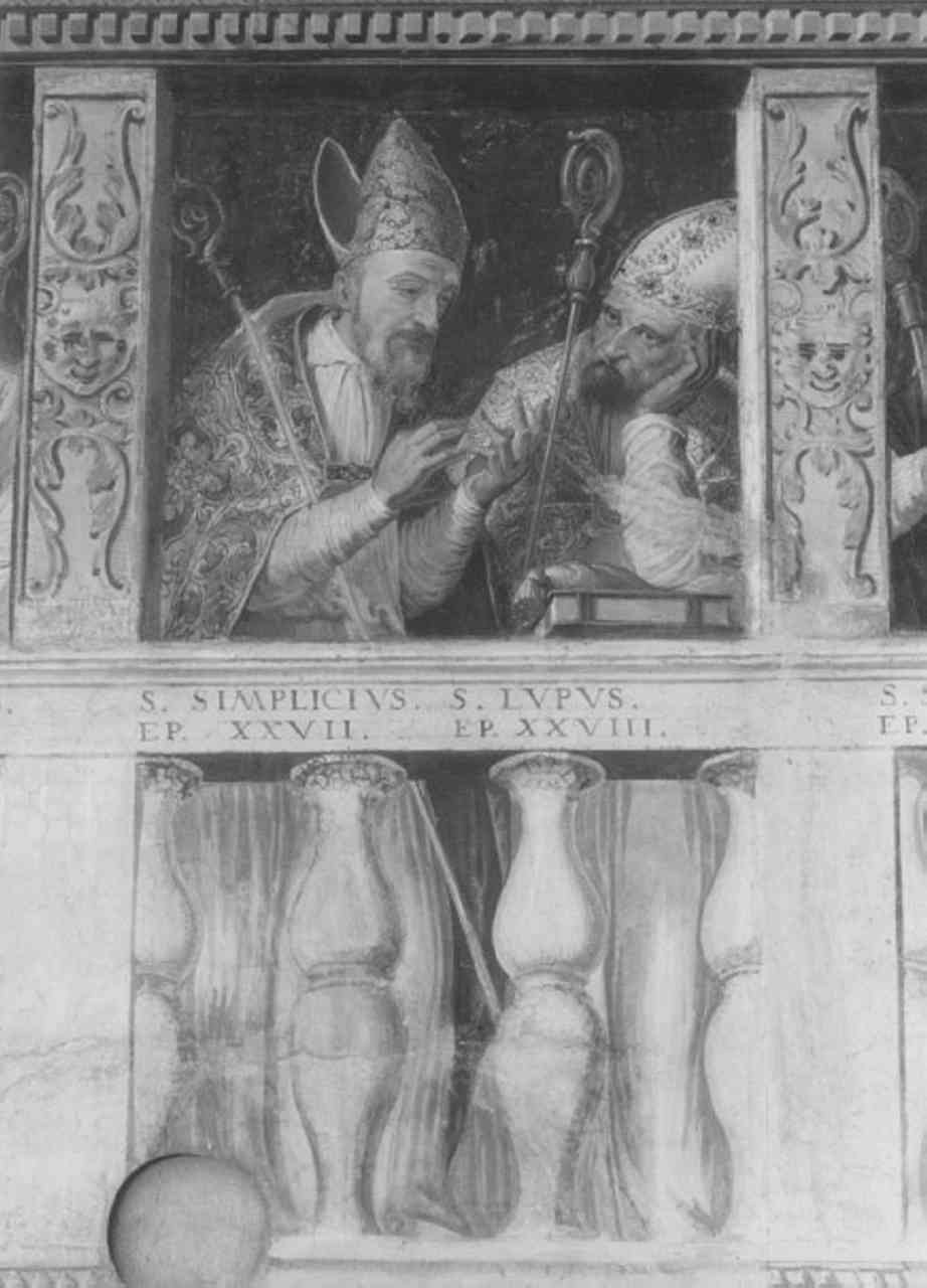 Personaggi: San Simplicio; San Lupo. Elementi architettonici: balaustrata; lesena