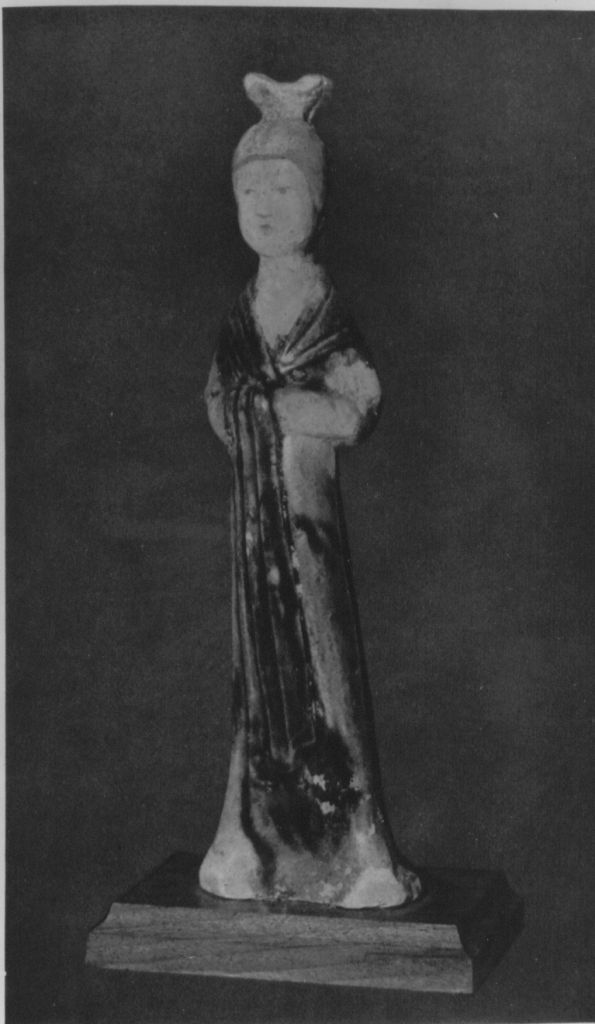- NOTIZIE STORICO CRITICHE Statuetta del periodo Tang (618-906). Appartiene alla collezione Hugues Le Gallais, composta dal nobile ambasciatore negli anni Trenta e Quaranta del Novecento, comprendente n. 82 oggetti che si configurano come preziosi esemplari d’arte dell’Estremo Oriente dal sec. I a.C. al XX d.C.: bronzi, ceramiche, porcellane, lacche, giade, sculture lapidee e lignee, dipinti su carta e seta