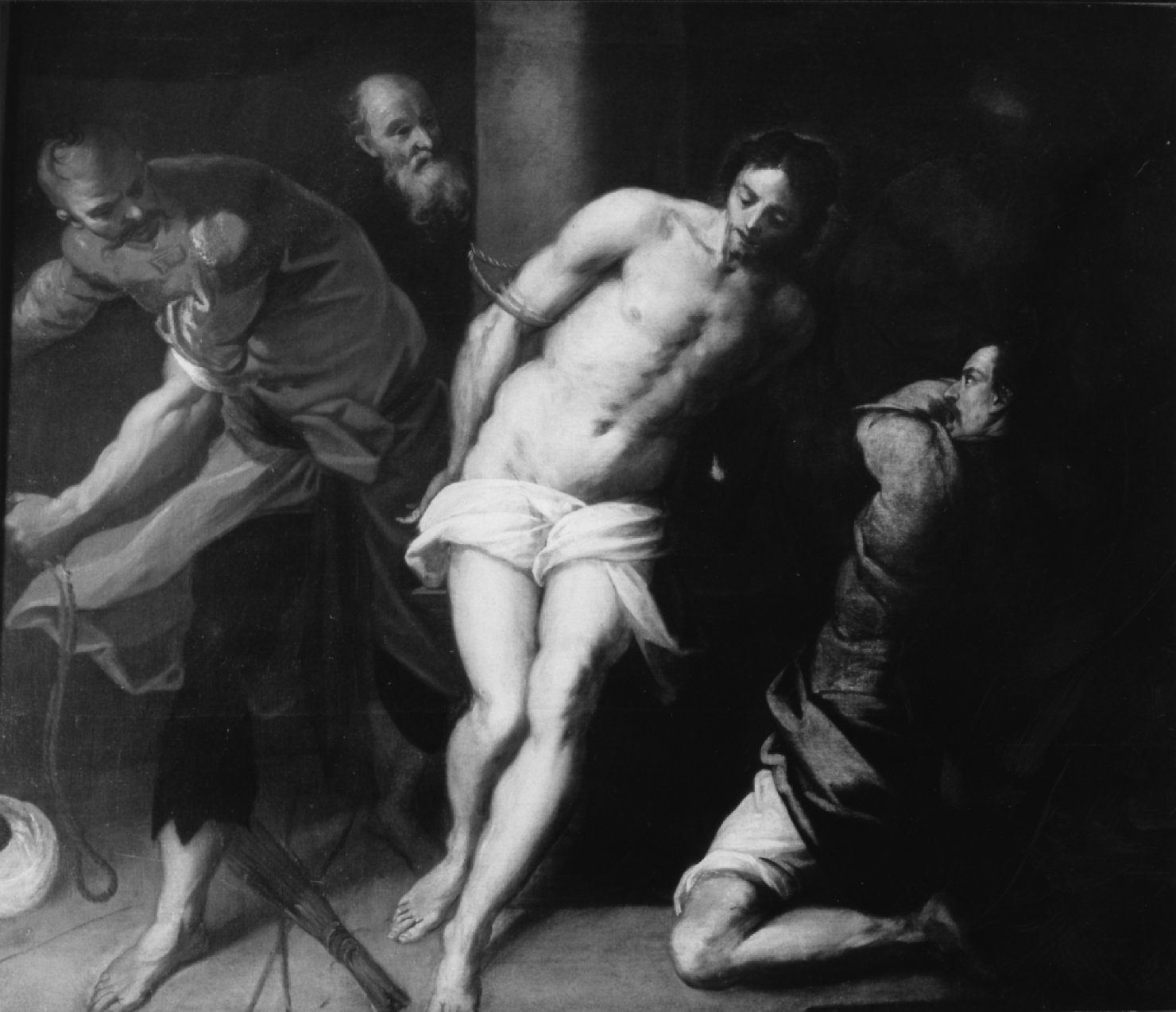 Personaggi: Cristo. Figure: uomini. Oggetti: fruste; corda. Architetture: colonna