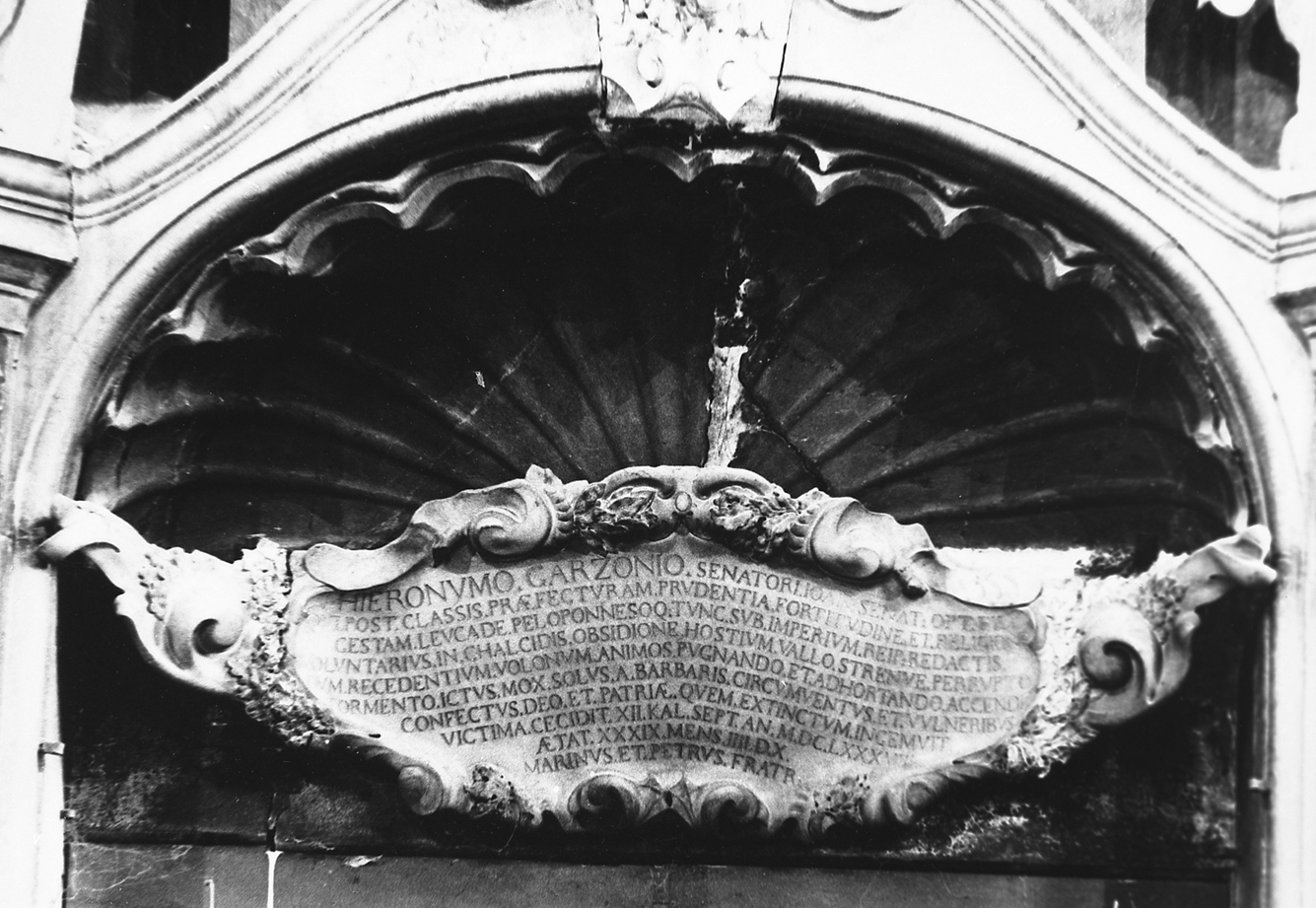 - ISCRIZIONI HIERONYMO GARZONIO SENATORI [---]/ MARINUS ET PETRUS FRATR - lettere capitali - a incisione - latino