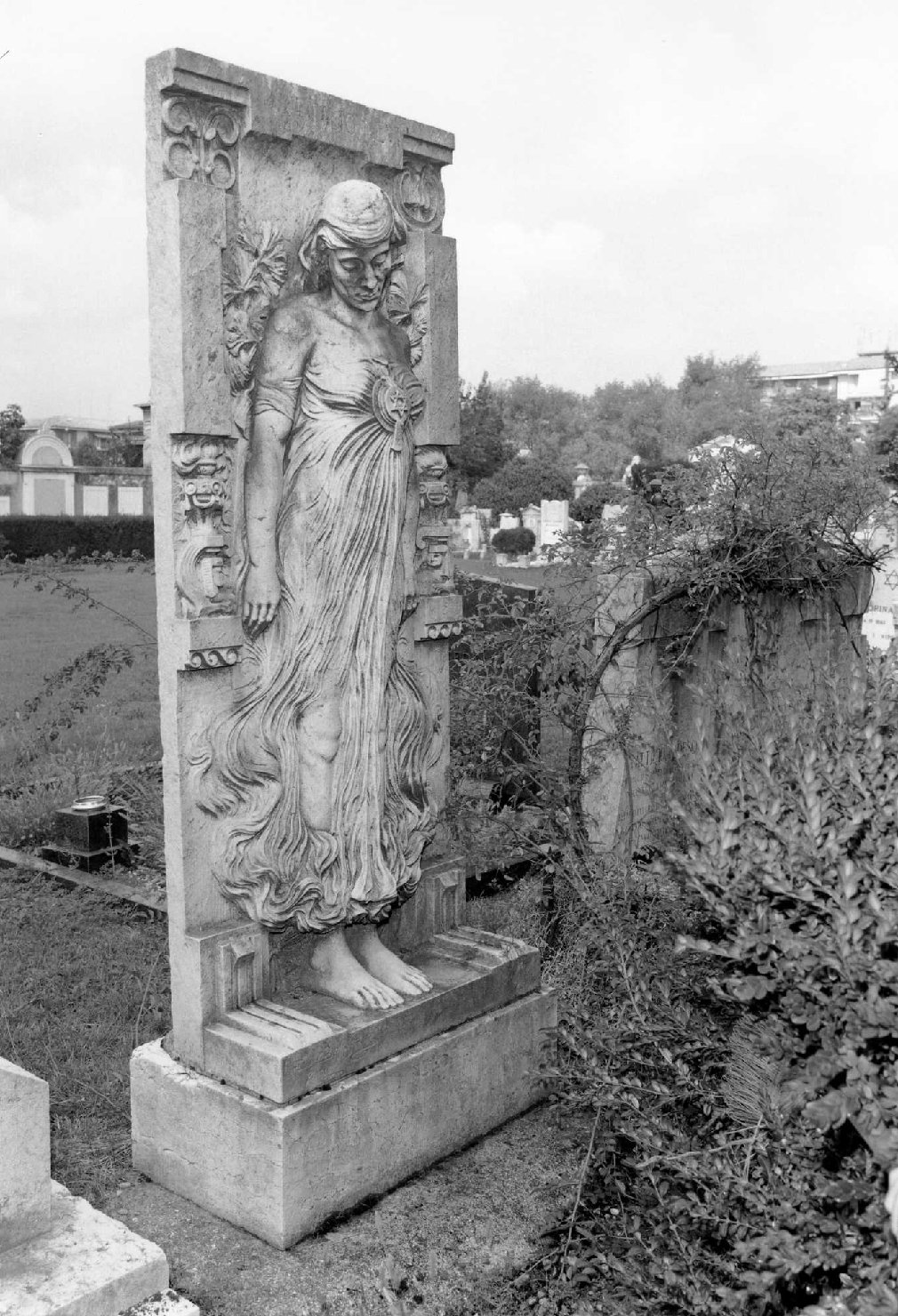 Monumento funebre composto da un basamento sormontato da una lapide davanti alla quale si trova una figura femminile scolpita ad altorilievo. La giovane donna, col capo coperto da un velo, indossa una lunga veste panneggiata che le lascia scoperte le spalle e arriva fino ai piedi nudi; è fermata sul petto da un fermaglio rotondo con la stella di David. Ai lati sono scolpiti motivi decorativi vegetali, antropomorfi e vasi con la fiaccola