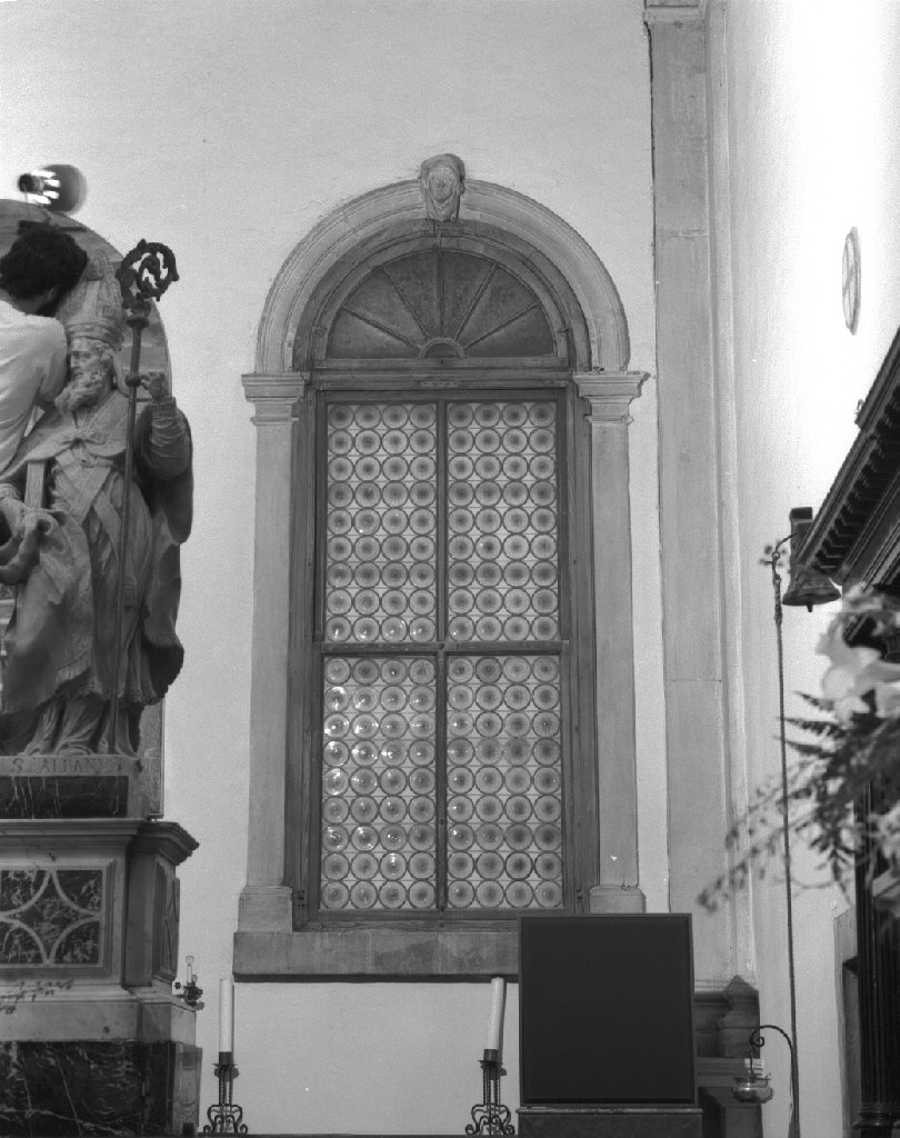 - NOTIZIE STORICO CRITICHE Le mostre incorniciano i due finestroni absidali che presentano vetri piombati di colore rosa intenso