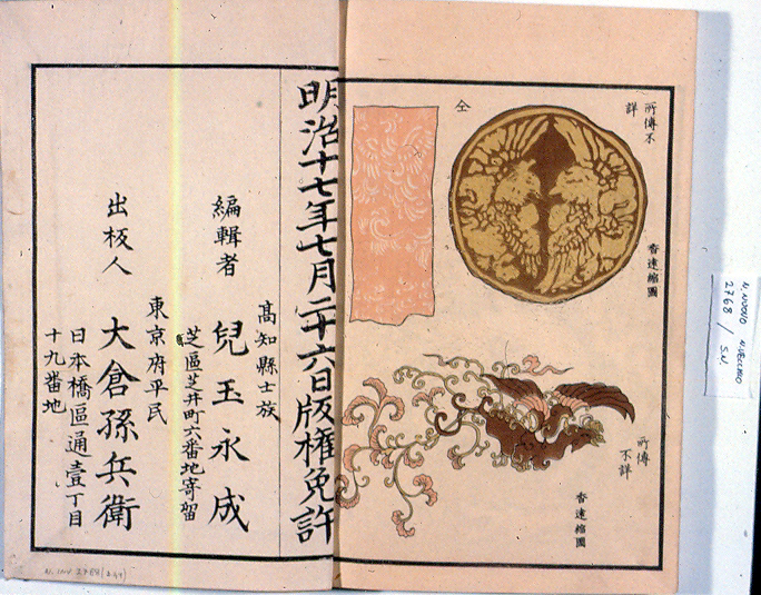 - ISCRIZIONI colophon - Shinsen kodai moyo kagami - ji - ideogrammi - a impressione - giapponese