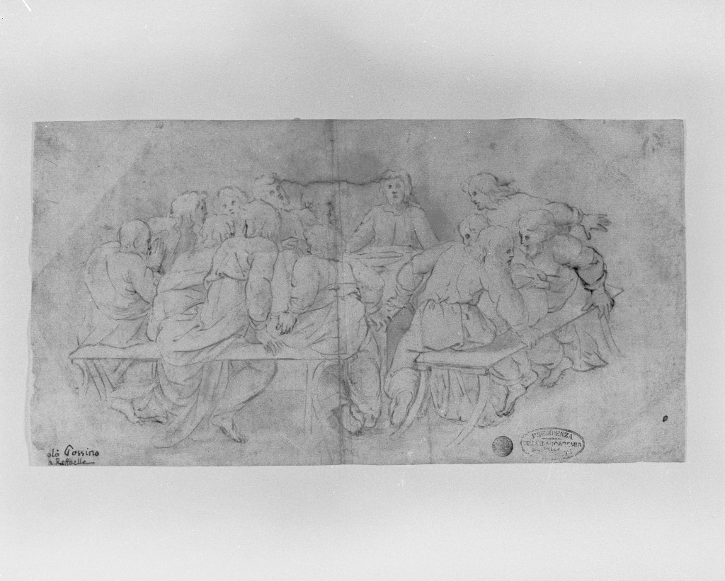 - NOTIZIE STORICO CRITICHE l disegno fa parte del gruppo di fogli di provenienza Resta attribuiti dal collezionista al Poussin. Si tratta invece di una modesta copia di anonimo artista romano della prima metèdel Seicento dall'ultima scena della XIII volticina delle Logge vaticane di Raffaello