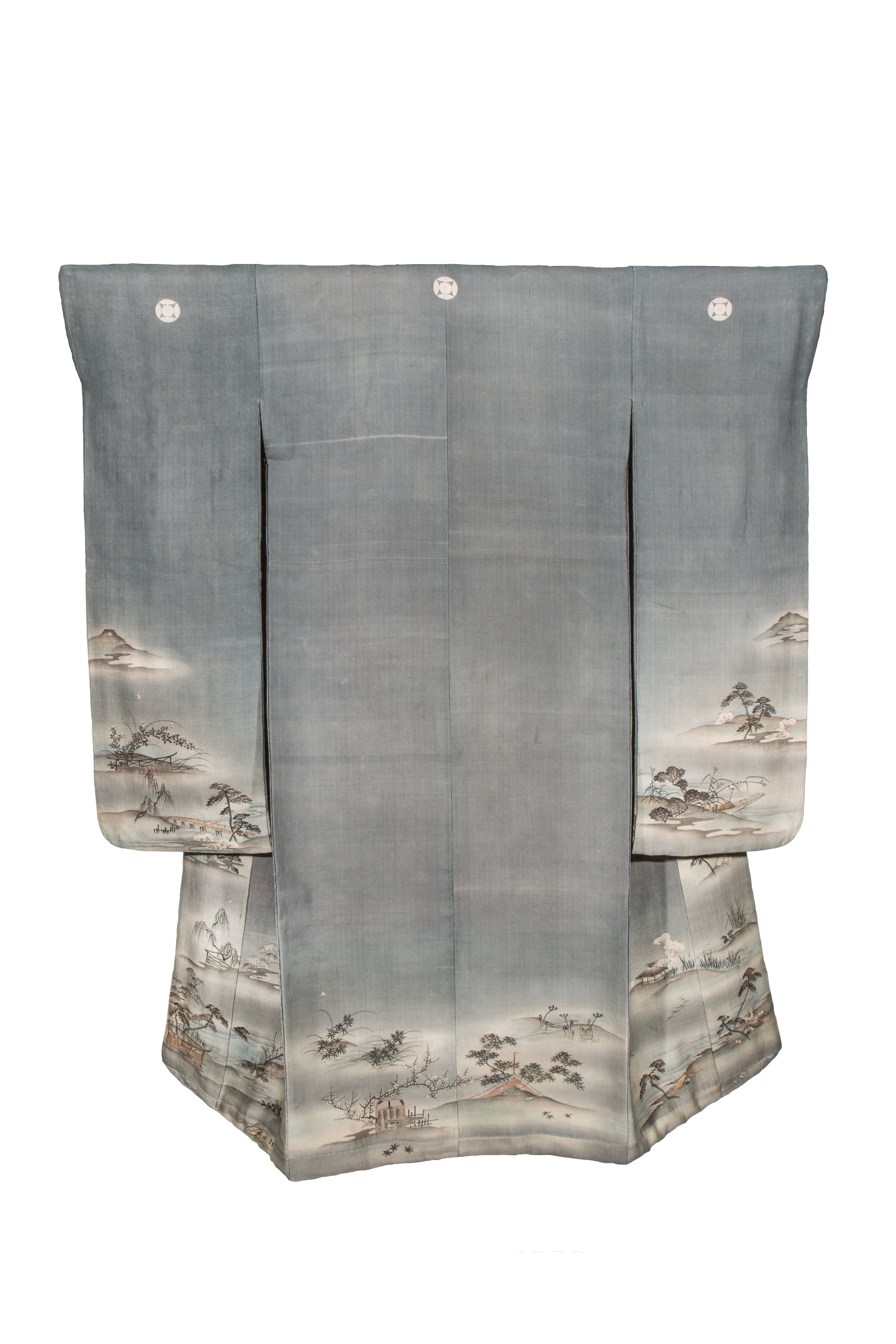 - NOTIZIE STORICO CRITICHE Paesaggio in cui vi si riconoscono alcuni luoghi celebri: il ponte Uji e la baia di Sumiyoshi. Richiama per tipologia stilistica un abito conservato presso il Victoria and Albert Museum di Londra (K 134) datato 1840-1868 (Kimono alla moda: tradizione e decò nel Giappone del Novecento, catalogo della mostra Fashioning Kimono: Dress in early Twentieth-Century (London, Victoria and Albert Museum 13 ottobre 2005 - 1 maggio 2006) a cura di Anne Van Assche, Milano, 5 Continents Editions, 2006, p. 102, n.19 (E. de Concini)